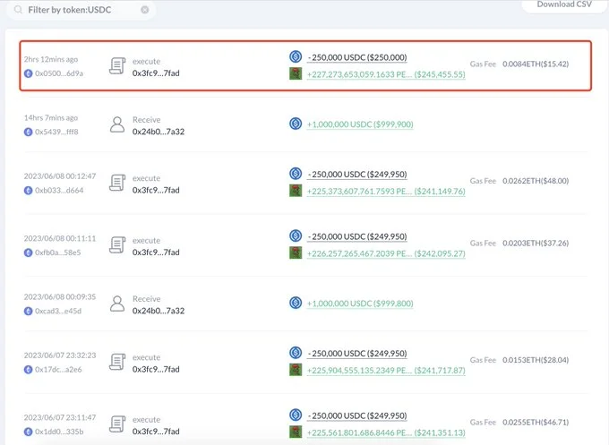 وفقًا لشركة تحليلات الشبكة ، أنفق حوت مجهول يطلق عليه “0x31f5” 250 ألف دولار بقيمة 250 ألف دولار لشراء 227 مليار بيب بسعر 0.0000011 دولار.