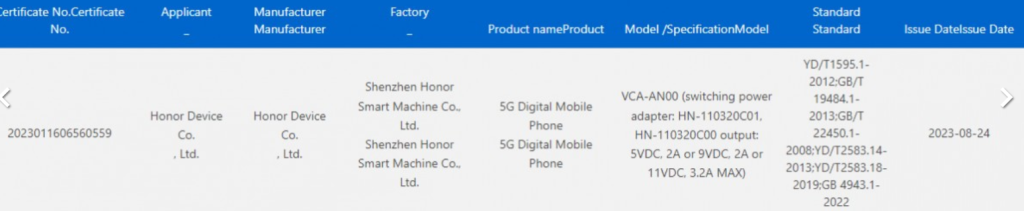 ظهر Honor Magic Vs 2، المعروف أيضًا باسم Magic V Slim، في قائمة 3C، مما يؤكد قدرات الشحن بقوة 35 واط.
